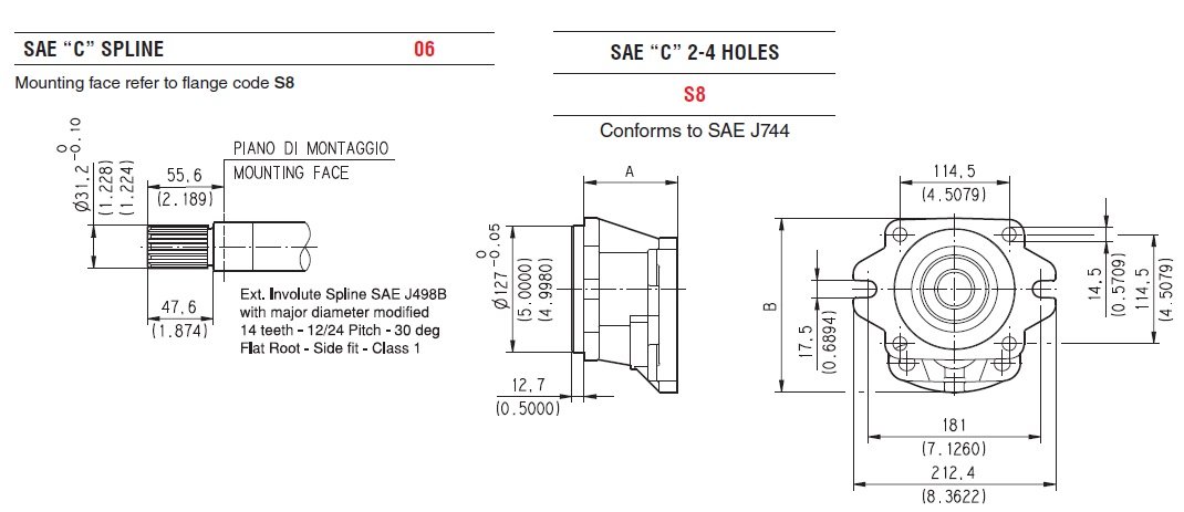Casappa HDP35 Serisi 06S8 Kapak ve Mil Tipi Döküm Gövdeli Dişli Pompa