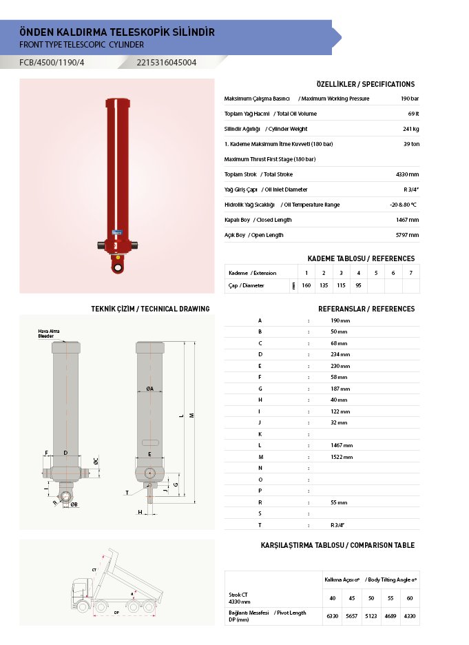 2215316045004 - FCB/4500/1190/4 ÖNDEN KALDIRMA TELESKOPİK SİLİNDİR