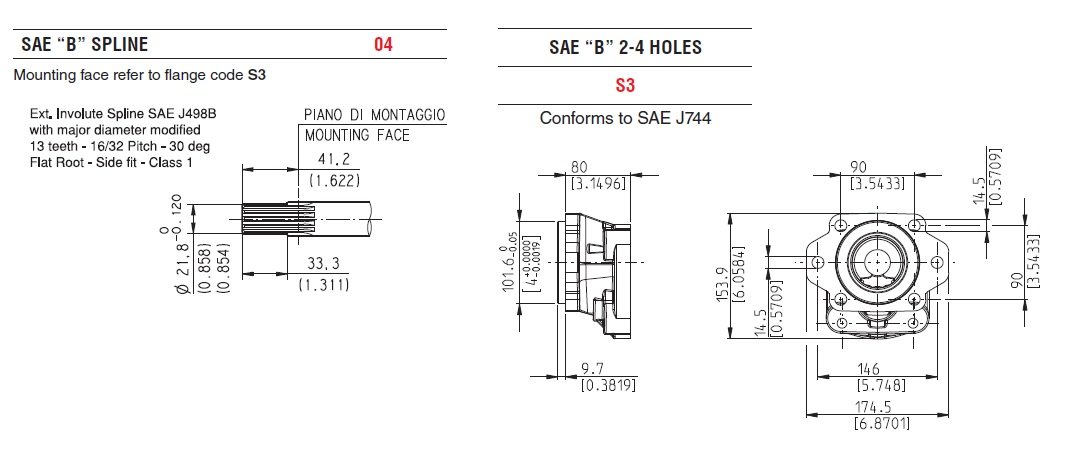 Casappa HDP30 Serisi 04S3 Kapak ve Mil Tipi Döküm Gövdeli Dişli Pompa
